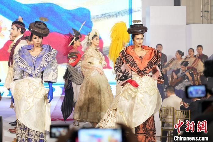 當(dāng)?shù)貢r(shí)間10月24日晚,“凈彩華裳·美美與共——傳統(tǒng)服飾與戲曲走進(jìn)中菲人文之驛活動(dòng)”在菲律賓首都馬尼拉舉行。中國(guó)和菲律賓傳統(tǒng)服飾接連亮相,呈現(xiàn)兩國(guó)傳統(tǒng)服飾文化,為觀眾帶來(lái)視覺(jué)盛宴。圖為模特展示菲律賓傳統(tǒng)服飾。記者 張興龍 攝