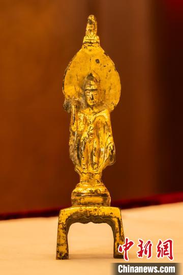 中國(guó)駐澳大利亞大使館舉行儀式,接收澳方向我國(guó)返還共4件流失文物藝術(shù)品與1件古生物化石。圖為隋晚期至唐銅鎏金佛立像。 國(guó)家文物局供圖