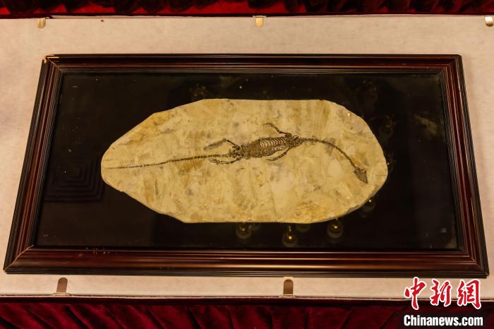 中國(guó)駐澳大利亞大使館舉行儀式,接收澳方向我國(guó)返還共4件流失文物藝術(shù)品與1件古生物化石。圖為晚侏羅世至早白堊世潛龍化石?!?guó)家文物局供圖