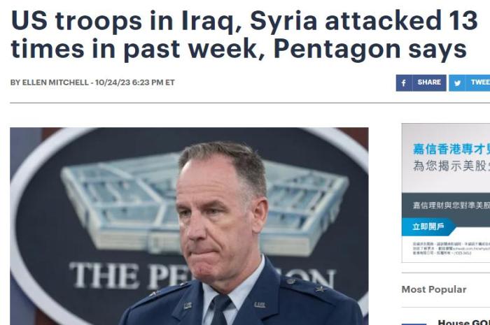 據(jù)報道,萊德表示,10月17日至24日,美軍遭遇了無人機和火箭彈的襲擊,在伊拉克遇襲10次,在敘利亞遇襲3次。