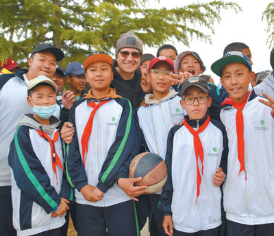 2023年5月,中國外文局語言顧問拉斐爾(中)在西藏拉薩與當?shù)貙W(xué)生合影留念。
