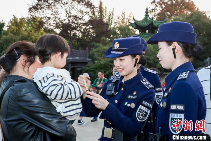 西湖女子巡邏隊為瘦西湖的游客小朋友提供服務(wù)。主辦方供圖