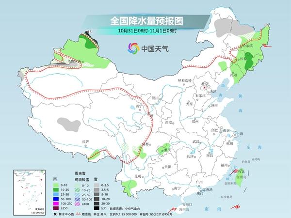10月31日,江南北部降雨將結(jié)束,而廣東、廣西雨勢將增強(qiáng)。預(yù)計(jì)西藏東部、川西高原中部等地的部分地區(qū)有小雪或雨夾雪;貴州西南部、云南東南部、廣東西部、廣西等地有中雨,其中,云南東南部、廣西東南部、廣東西南部等地的部分地區(qū)有大雨。