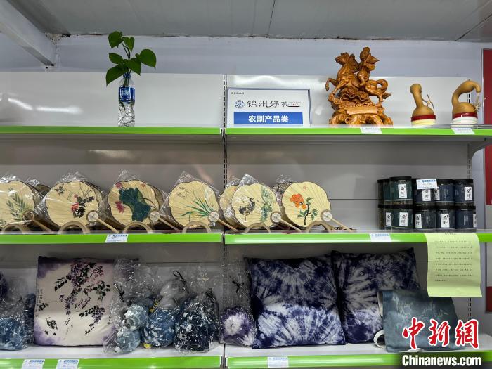 錦州市北普陀山景區(qū)的“錦州好禮”殘疾人非遺愛(ài)心助殘專柜展示。李晛 攝