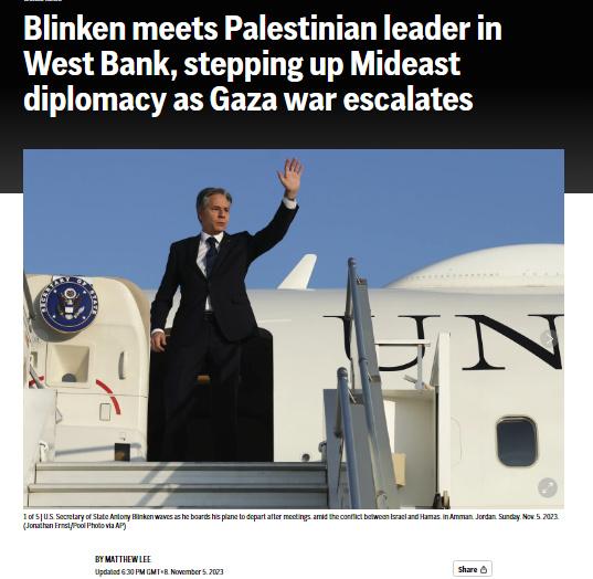 據報道,這是本輪巴以沖突爆發(fā)以來,美國最高級別外交官首次到訪約旦河西岸。