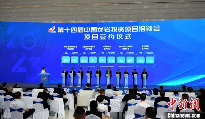 11月8日,第十二屆海峽兩岸機械產(chǎn)業(yè)博覽會暨第十四屆中國龍巖投資項目洽談會在福建省龍巖市拉開帷幕。圖為現(xiàn)場簽約。中新網(wǎng)記者呂明攝