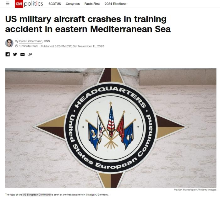 中新網(wǎng)11月12日電 據(jù)美國有線電視新聞網(wǎng)(CNN)報(bào)道,美國歐洲司令部當(dāng)?shù)貢r(shí)間11日表示,一架美國軍用飛機(jī)在地中海東部墜毀。