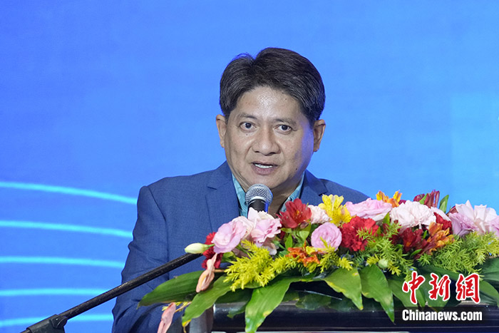 圖為菲律賓總統(tǒng)減貧顧問(wèn)拉里·加頓致辭。 中新社發(fā) 蔣雨峰 攝