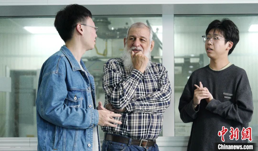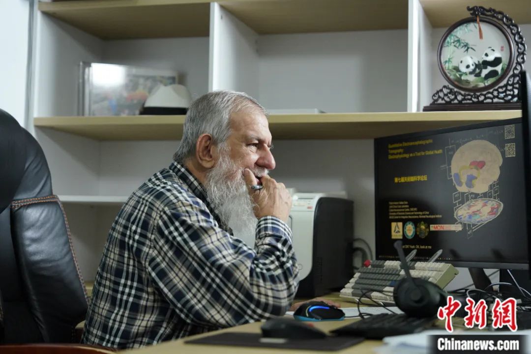 2023年11月,利用實驗室午間休憩間隙,裴德樂在電子科技大學(xué)接受了中新社“東西問”采訪。身著紅色衛(wèi)衣、藍(lán)色牛仔褲的裴德樂精神矍鑠,言語間中氣十足。