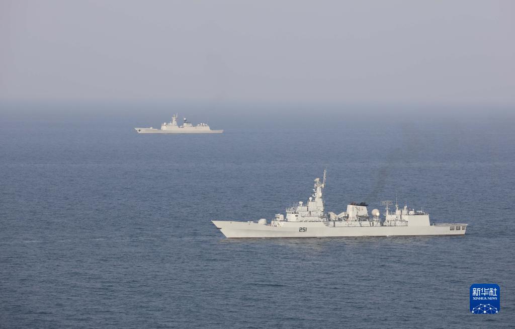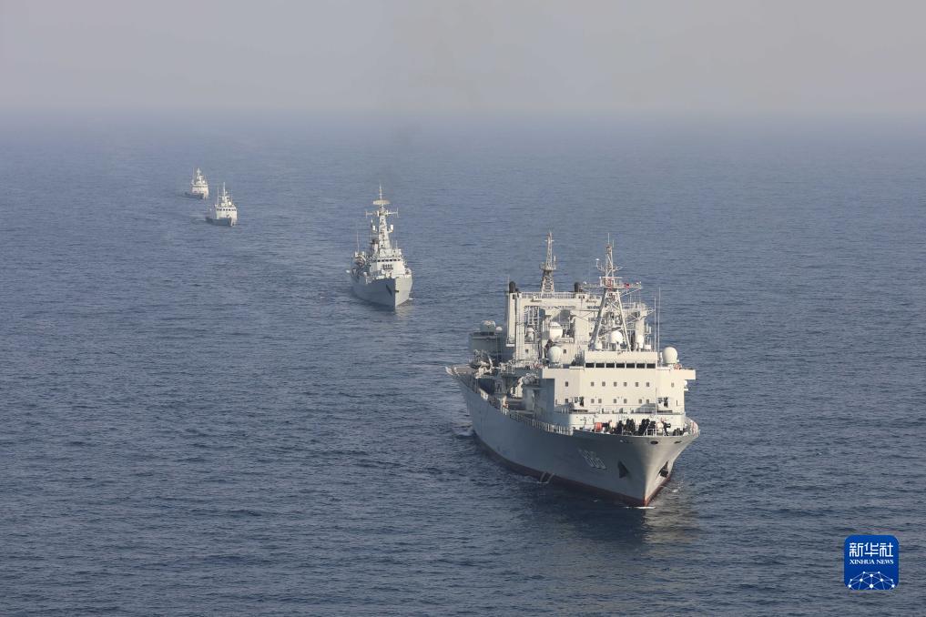 中巴“海洋衛(wèi)士-3”海上聯(lián)合演習(xí)在阿拉伯海北部??沼蚺e行,雙方艦艇組織編隊運動(11月14日攝)。新華社發(fā)(姜霞攝)