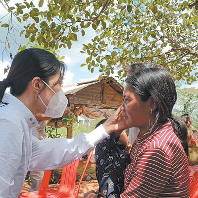 2022年3月,由中國(guó)中醫(yī)科學(xué)院西苑醫(yī)院醫(yī)生為主體的中國(guó)援柬中醫(yī)醫(yī)療隊(duì)抵達(dá)柬首都金邊,開始為期1年的醫(yī)療服務(wù)工作。今年1月,醫(yī)療隊(duì)來到桔井省,為當(dāng)?shù)孛癖娺M(jìn)行義診,許多人慕名前來檢查身體?!奥牬謇锶苏f,中國(guó)醫(yī)療隊(duì)的口碑非常好,治好了很多患者,我就想帶女兒去試試?!蓖⒍U達(dá)的母親孔吉棉告訴記者。