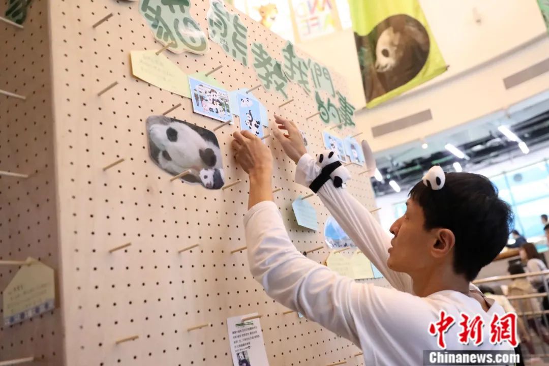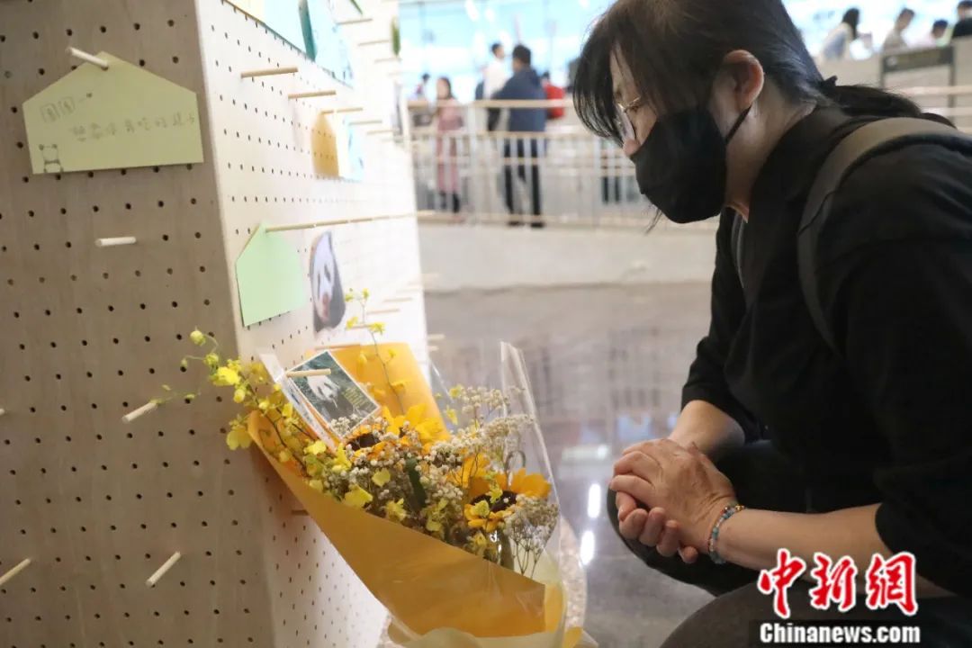 不少家長帶著小朋友來到現(xiàn)場參加活動,小朋友在卡片上慢慢畫出心中熊貓的模樣,并寫下想對“團(tuán)團(tuán)”說的話。有的民眾還送來鮮花,表達(dá)對“團(tuán)團(tuán)”的喜愛和懷念之情。