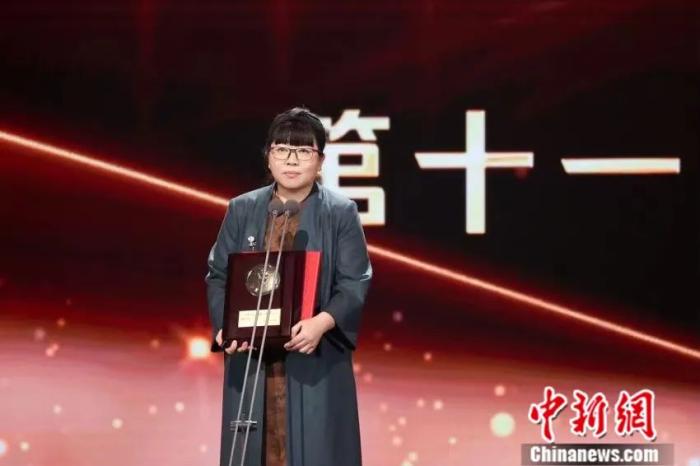 2023年11月19日晚,喬葉獲頒第十一屆茅盾文學(xué)獎。浙江衛(wèi)視供圖