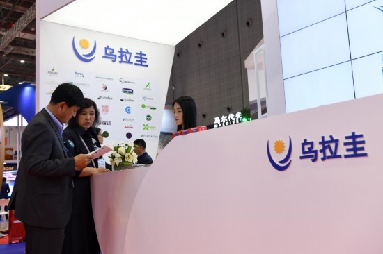 2019年11月6日,參觀者在第二屆進博會烏拉圭國家館展臺咨詢。