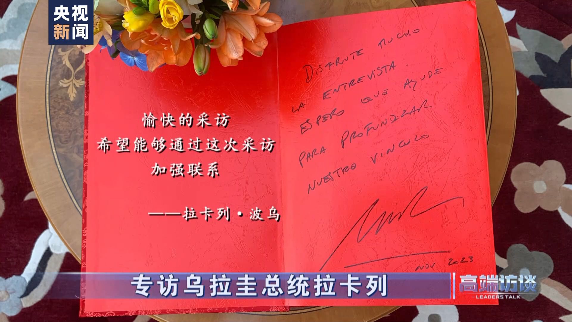 烏拉圭總統(tǒng)拉卡列·波烏在接受總臺(tái)專訪后題詞