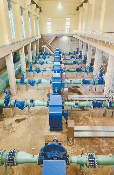 坦桑尼亞阿魯沙新供水系統(tǒng)項目由中國電建市政建設(shè)集團(tuán)有限公司承建。項目設(shè)計日供水量為12.5萬立方米/天,可滿足阿魯沙40萬人的用水需求。項目建成后將極大地改善阿魯沙市區(qū)的供水短缺問題,對推動當(dāng)?shù)亟?jīng)濟(jì)發(fā)展、增進(jìn)民生福祉具有重要作用。圖為阿魯沙新供水系統(tǒng)項目5號提升泵站內(nèi)景。