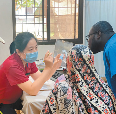 自1964年起,中國一直向坦桑尼亞桑給巴爾派遣醫(yī)療隊。中國醫(yī)療隊為當(dāng)?shù)厝嗣裉峁┽t(yī)療服務(wù),培訓(xùn)當(dāng)?shù)蒯t(yī)務(wù)人員,推動了桑給巴爾衛(wèi)生事業(yè)的發(fā)展。圖為中國(江蘇)第三十二期援桑給巴爾醫(yī)療隊隊員為當(dāng)?shù)鼗颊邫z查。