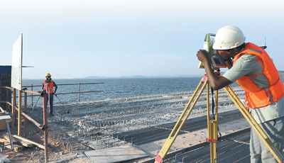 坦桑尼亞馬古富力大橋由中國土木工程集團(tuán)有限公司和中鐵十五局聯(lián)合承建,連接坦桑尼亞蓋塔省和姆萬扎省,是坦桑尼亞重要的內(nèi)陸國際通道。大橋建成后將極大改善當(dāng)?shù)亟煌顩r,帶動坦桑尼亞與周邊國家的互聯(lián)互通,促進(jìn)區(qū)域經(jīng)濟(jì)社會發(fā)展。圖為該項目外籍工程師正在使用全站儀進(jìn)行室外測控。