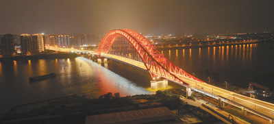 在流經(jīng)湖南省株洲市的湘江水面上,架著一座弧形設(shè)計的紅色大橋,北起清水塘大道,上跨清霞路,往南越過湘江,對接珠江北路落地,全長2.85公里,橋身舒展大氣,被市民稱為“湘江最美大橋”,它就是清水塘大橋。這座大橋由中交三航局投資建設(shè)并運營,與不遠處的清水塘城市公園相互映襯,成為中交集團參與老工業(yè)區(qū)搬遷改造的代表作。
