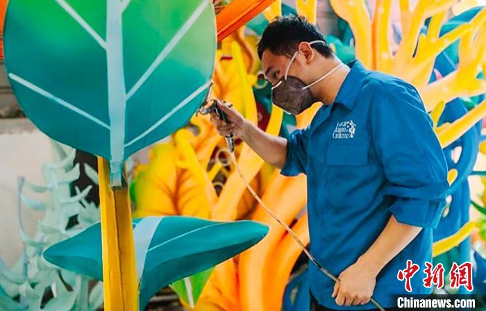工作人員已經(jīng)開始投入法國豫園燈會的搭建工作。豫園供圖