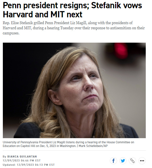 報(bào)道指出,馬吉爾是美國(guó)首個(gè)因“反猶爭(zhēng)議”辭職的高校校長(zhǎng)。