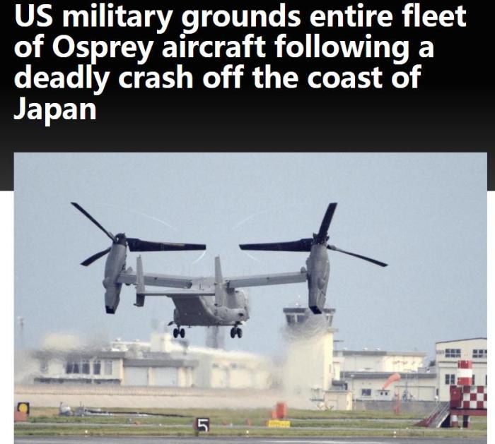美聯(lián)社指出,此次墜機(jī)事件再次引發(fā)了對(duì)“魚鷹”飛機(jī)安全性的質(zhì)疑。美國(guó)空軍、海軍和海軍陸戰(zhàn)隊(duì)采取了非同尋常的措施,停飛了數(shù)百架飛機(jī)。