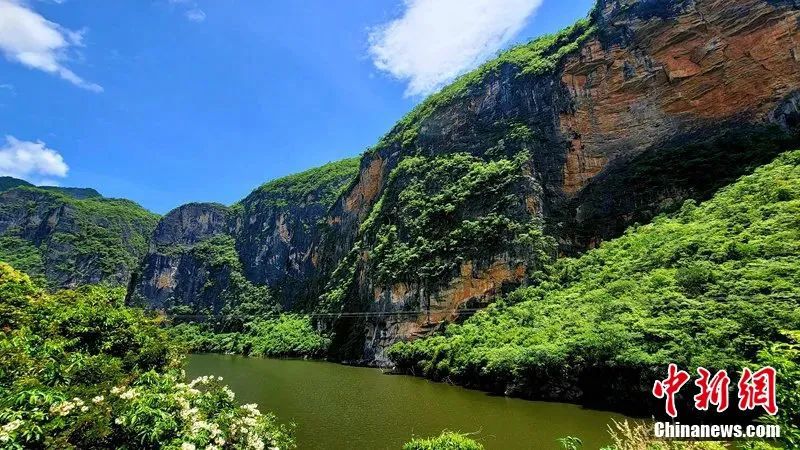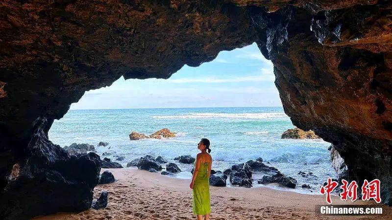 圖為萬(wàn)寧山欽灣燕子洞懸崖秘境吸引游客打卡。符宇群 攝