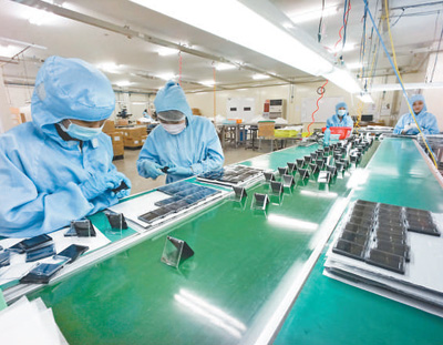 龍江工業(yè)園內,方正電機(越南)有限責任公司車間里的當?shù)貑T工正在工作。