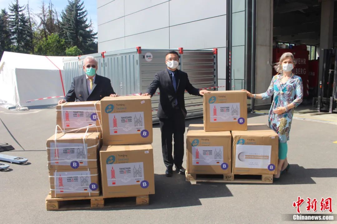 中國駐德大使館接到來信后緊急調(diào)集物資,中國各界紛紛伸出援手——浙江一家醫(yī)藥企業(yè)當(dāng)即決定免費贈藥,南京市政府同時籌得幾萬只口罩和上百套防護服,通過中國專機運往德國。2020年4月21日,中國駐德大使館工作人員自柏林驅(qū)車700公里,將物資交到了海德堡市政府和托馬斯·拉貝的手中。