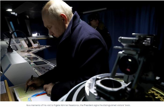 據(jù)塔斯社報(bào)道,普京在貴賓簿上寫(xiě)道,“有這樣的水兵、這樣的艦艇和這樣的武器,俄羅斯會(huì)感到安全”。