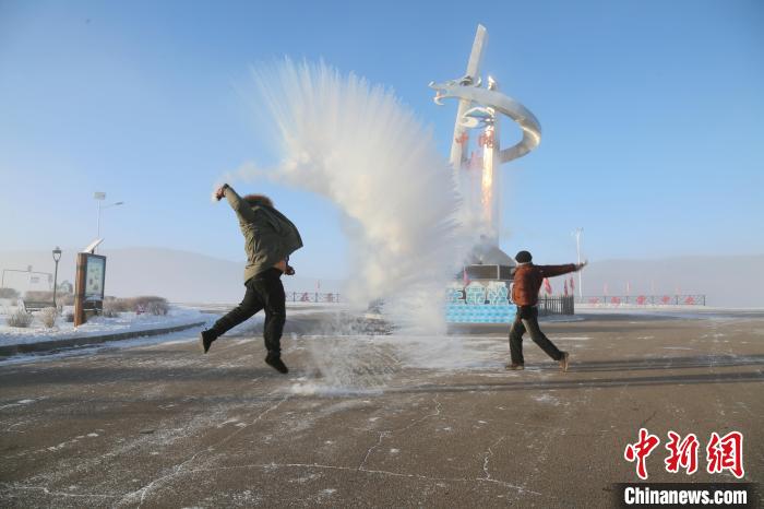 12月13日,“中國最冷小鎮(zhèn)”最低氣溫降至-45.1℃,游客在體驗(yàn)“潑水成冰”。馮宏偉 攝