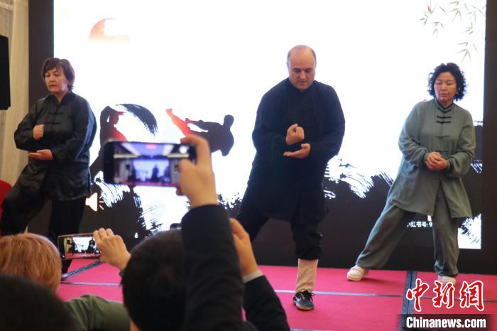 哈武術(shù)愛好者表演中華武術(shù)?! ≈行戮W(wǎng)記者 張碩 攝