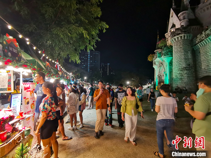 1月1日晚,位于泰國曼谷的網(wǎng)紅打卡點(diǎn)喬德夜市游人如織。 中新社記者 李映民 攝
