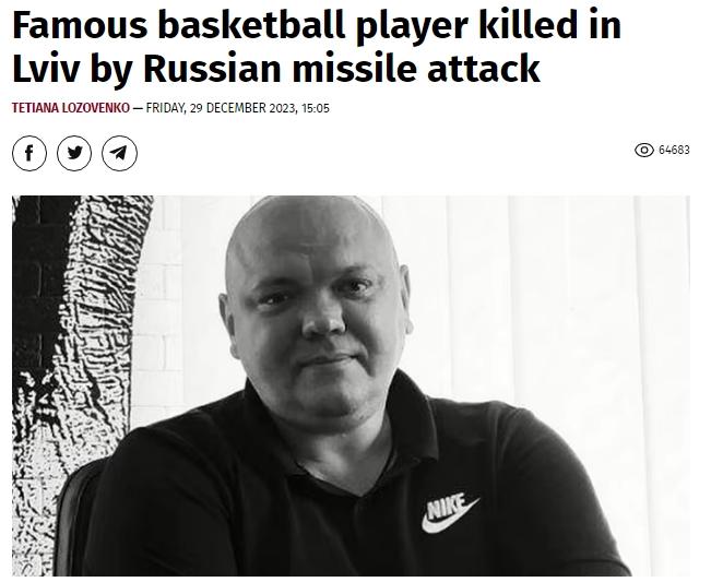 中新網(wǎng)12月30日電 據(jù)《烏克蘭真理報》報道,當(dāng)?shù)貢r間29日,烏克蘭利沃夫市議會體育事務(wù)負(fù)責(zé)人安東·尼庫林發(fā)文稱,烏克蘭知名籃球運(yùn)動員、教練維克多·科布齊斯蒂在俄軍當(dāng)天發(fā)動的襲擊中死亡。