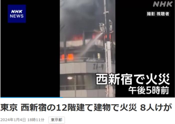 中新網(wǎng)1月4日電 據(jù)日本廣播協(xié)會(huì)(NHK)報(bào)道,當(dāng)?shù)貢r(shí)間1月4日傍晚,日本東京新宿區(qū)的一棟12層建筑發(fā)生火災(zāi),現(xiàn)場(chǎng)火光沖天濃煙滾滾,目前已致8人受傷。