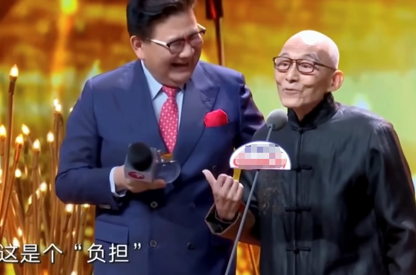 游本昌接過獎杯后,想送給年輕的演員們一句衷心之言。張口前他說了句“好沉”,把手里的獎杯交還給頒獎人幫忙保管,笑著說“這是個負(fù)擔(dān)”。