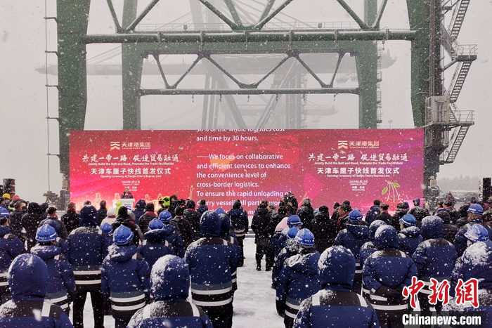 1月17日,天津車厘子快線首發(fā)儀式在天津港太平洋國際集裝箱碼頭舉行?!败嚴遄涌炀€”始發(fā)于智利圣安東尼奧港,直抵天津港。未來一周,還將有2艘次智利車厘子貨船抵達天津港,累計8300噸車厘子及其他南美洲產(chǎn)品從天津港上岸。 中新社記者 佟郁 攝