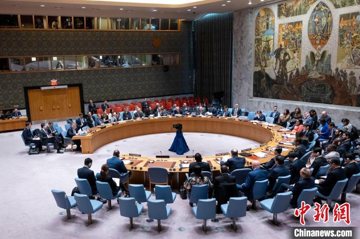 當(dāng)?shù)貢r(shí)間1月22日,聯(lián)合國安理會審議烏克蘭問題。圖為會議現(xiàn)場?!≈行律缬浾?王帆 攝