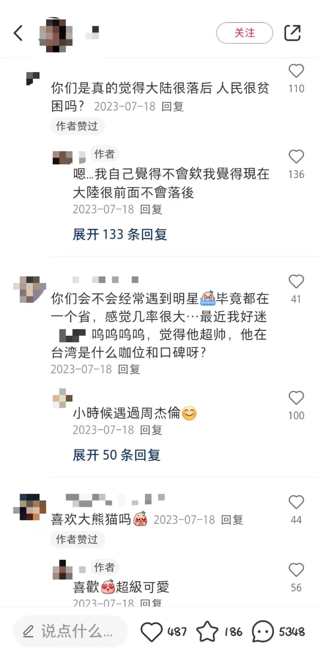 “大陸哪個(gè)城市的美食多?”“用現(xiàn)金支付可以嗎?”“畢業(yè)后想去大陸工作,可以分享一下經(jīng)驗(yàn)嗎?”……小紅書上有不少“臺(tái)灣人問(wèn),大陸人答”的帖子,兩岸年輕人就生活、文化、飲食等話題,在評(píng)論區(qū)留言、互動(dòng)。當(dāng)然,也有臺(tái)灣年輕人現(xiàn)身回答島內(nèi)情況,同樣熱評(píng)紛紛。