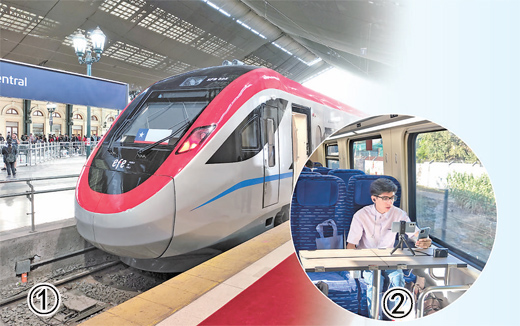 圖①:中企研制的電力內(nèi)燃雙動力動車組列車??吭谥抢サ貋喐缰醒胲囌尽?/p>