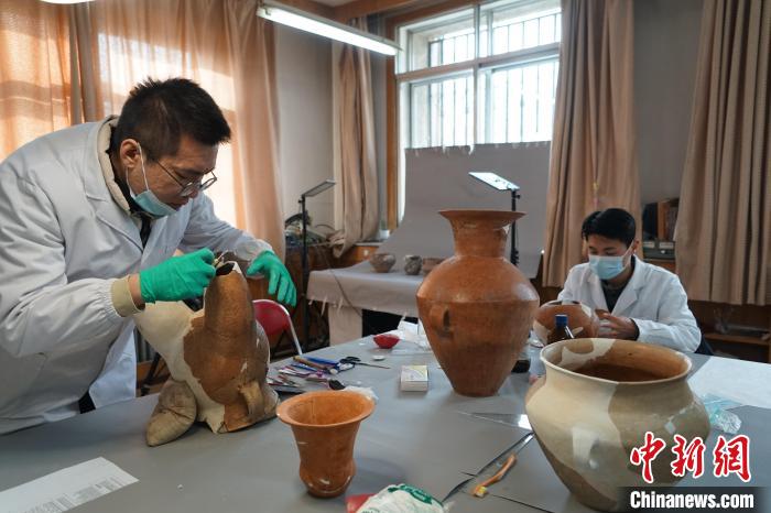 圖為正在被修復(fù)的陶器。 中新網(wǎng)記者李江寧 攝