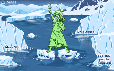 種種社會問題加劇社會悲觀情緒蔓延,社會治理失調(diào)凸顯“美國夢”行不再光鮮的事實。據(jù)美國廣播公司(ABC News)本月中旬報道,該公司聯(lián)合益普索開展了一項關于“美國夢”的民調(diào)。與2010年首次開展此項民調(diào)時,50%的受訪民眾相信“美國夢”存在的事實相比,最新民調(diào)中,僅有27%的人認為“美國夢”依然存在。“噩夢”還是“幻夢”?以激勵個人獲得成功的“美國夢”恐將為社會困局的毒藤所纏繞,“自由女神火炬”指引下的美國夢成為一個個“美國噩夢”。(彭大偉 孟湘君 谷麗萍 陳善坤 薛凌橋)