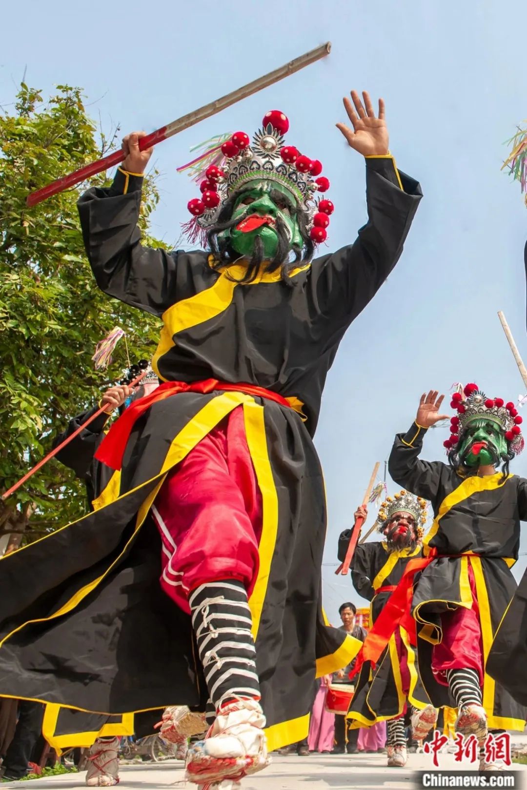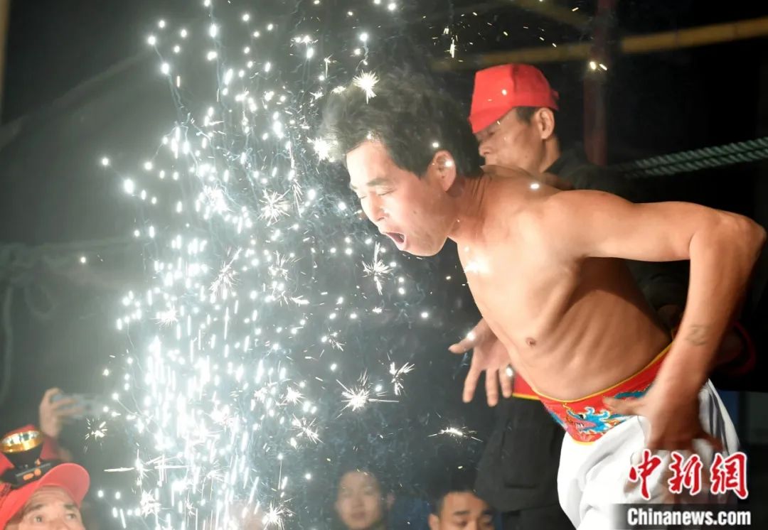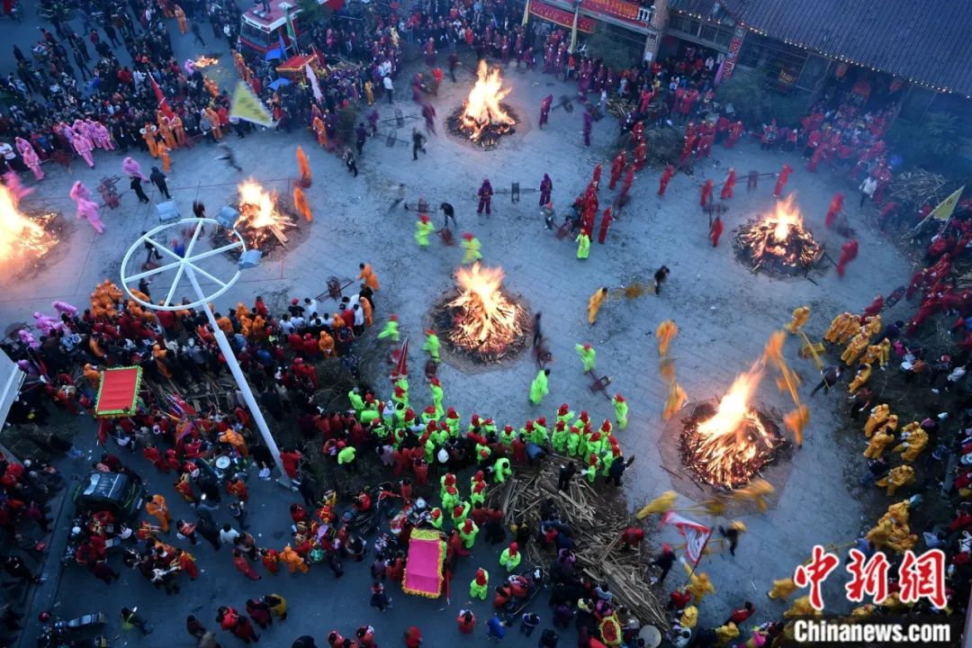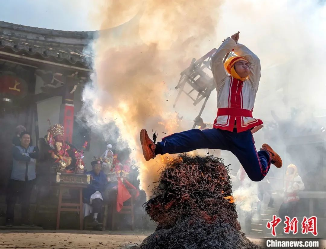 信眾在莆禧古城“擺棕轎”跳火祈福。中新社記者 王東明 攝
