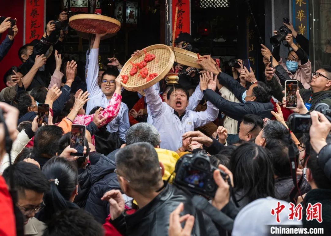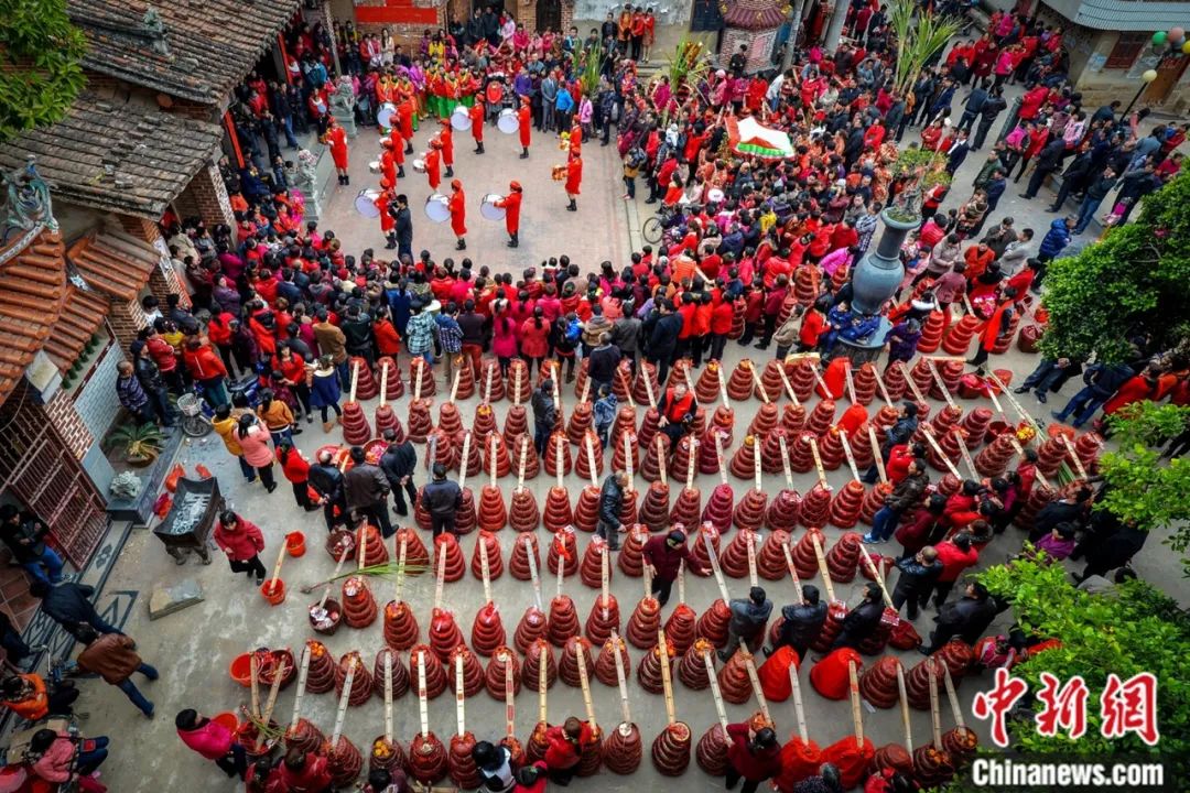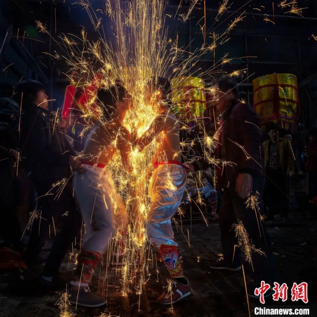 信眾在莆禧古城“擺棕轎”跳火祈福。中新社記者 王東明 攝