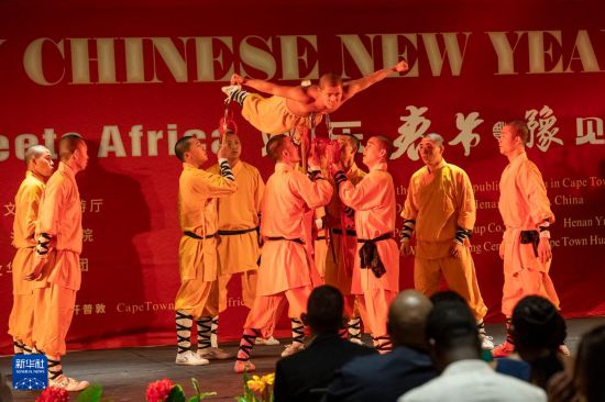 1月27日晚,中國演員在南非開普敦表演少林功夫。