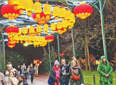 法國(guó)民眾在巴黎舉行的豫園燈會(huì)上游覽。
