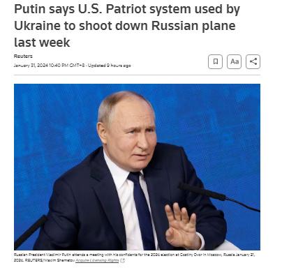 中新網(wǎng)2月1日電 據(jù)路透社報道,俄羅斯總統(tǒng)普京當?shù)貢r間1月31日表示,俄方確認此前載有被俘烏克蘭軍事人員的俄伊爾-76軍用運輸機是被美制“愛國者”導彈系統(tǒng)擊落。