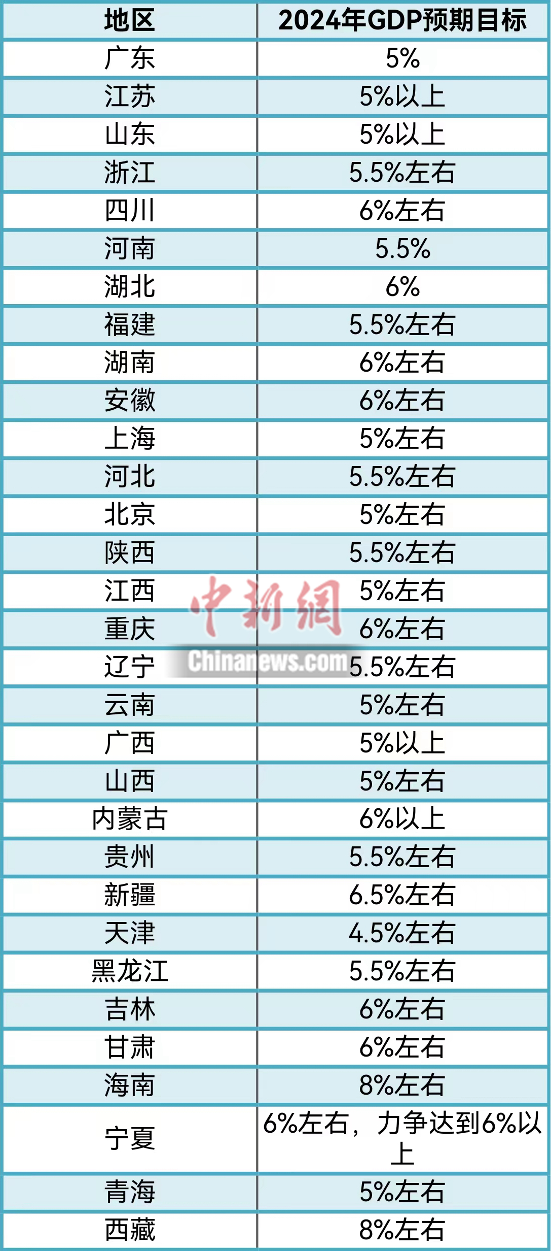 從各個省份敲定的新年GDP目標來看,絕大多數(shù)省份不低于5%,其中,海南、西藏均將2024年增速目標設(shè)為8%左右,為全國最高。