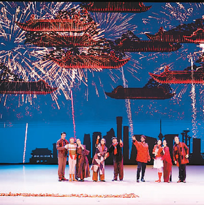 舞臺(tái)上,紅彤彤的燈籠、喜慶的春聯(lián)、熱鬧的廟會(huì)奏響了中國(guó)農(nóng)歷新年的序曲;“團(tuán)團(tuán)”和“圓圓”家的年夜飯彰顯了中國(guó)禮儀之邦的待客之道、尊老愛幼的傳統(tǒng)美德,一張全家福更傳達(dá)了中國(guó)人對(duì)親情的重視和對(duì)團(tuán)圓的向往;“胡桃夾子”大戰(zhàn)“年”獸,則充滿童趣地演繹了“過年”的傳說;而當(dāng)寓意吉祥的仙鶴在蒼勁的松樹下迎著朝陽翩翩起舞,西方芭蕾藝術(shù)在中國(guó)文化意象中煥發(fā)出了美妙的東方神韻;扇子舞、絲綢舞、風(fēng)箏舞、陀螺舞……一個(gè)個(gè)頗具中國(guó)元素的慶典場(chǎng)面讓阿聯(lián)酋觀眾游歷在瑰麗多姿的中國(guó)傳統(tǒng)文化中。
