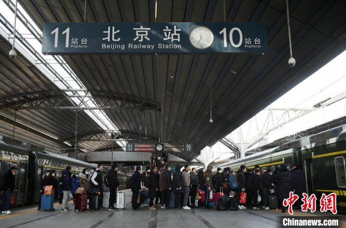 在鐵路北京站,旅客有序乘坐1461次列車前往自己目的地。中新網(wǎng)記者 殷立勤 攝